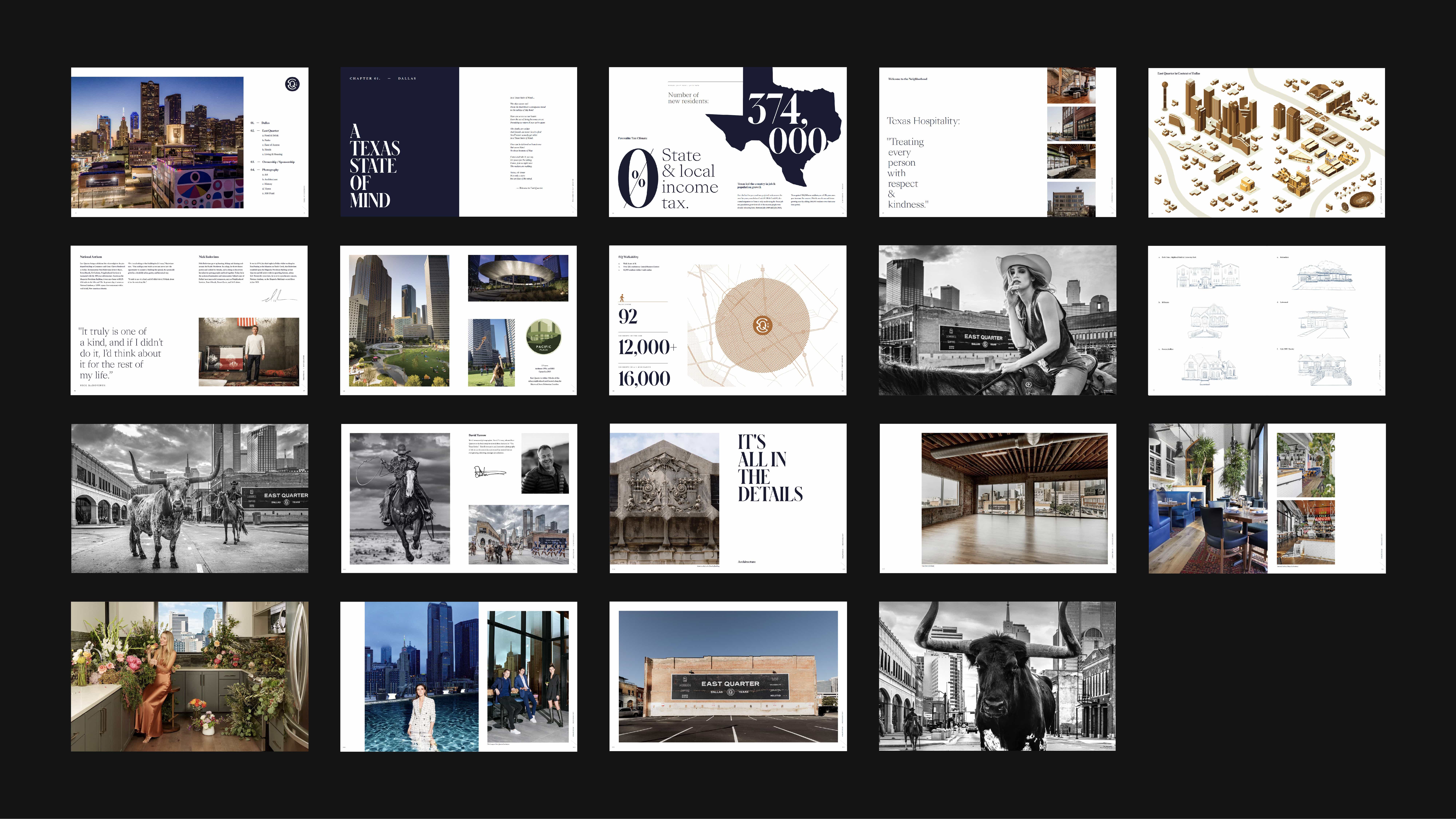 To capture the history in East Quarter’s building portfolio, you have to run your fingers across the bricks—we did our best to put our audience on the ground in this up and coming area by creating a book showcasing EQ’s existing amenities & spaces.