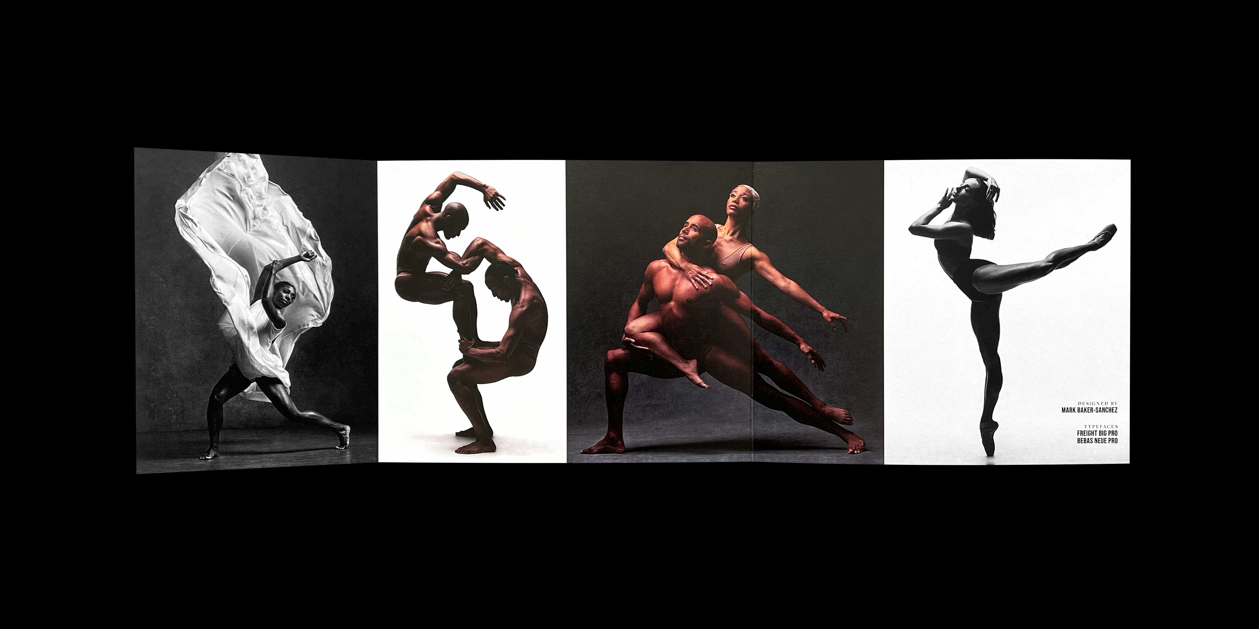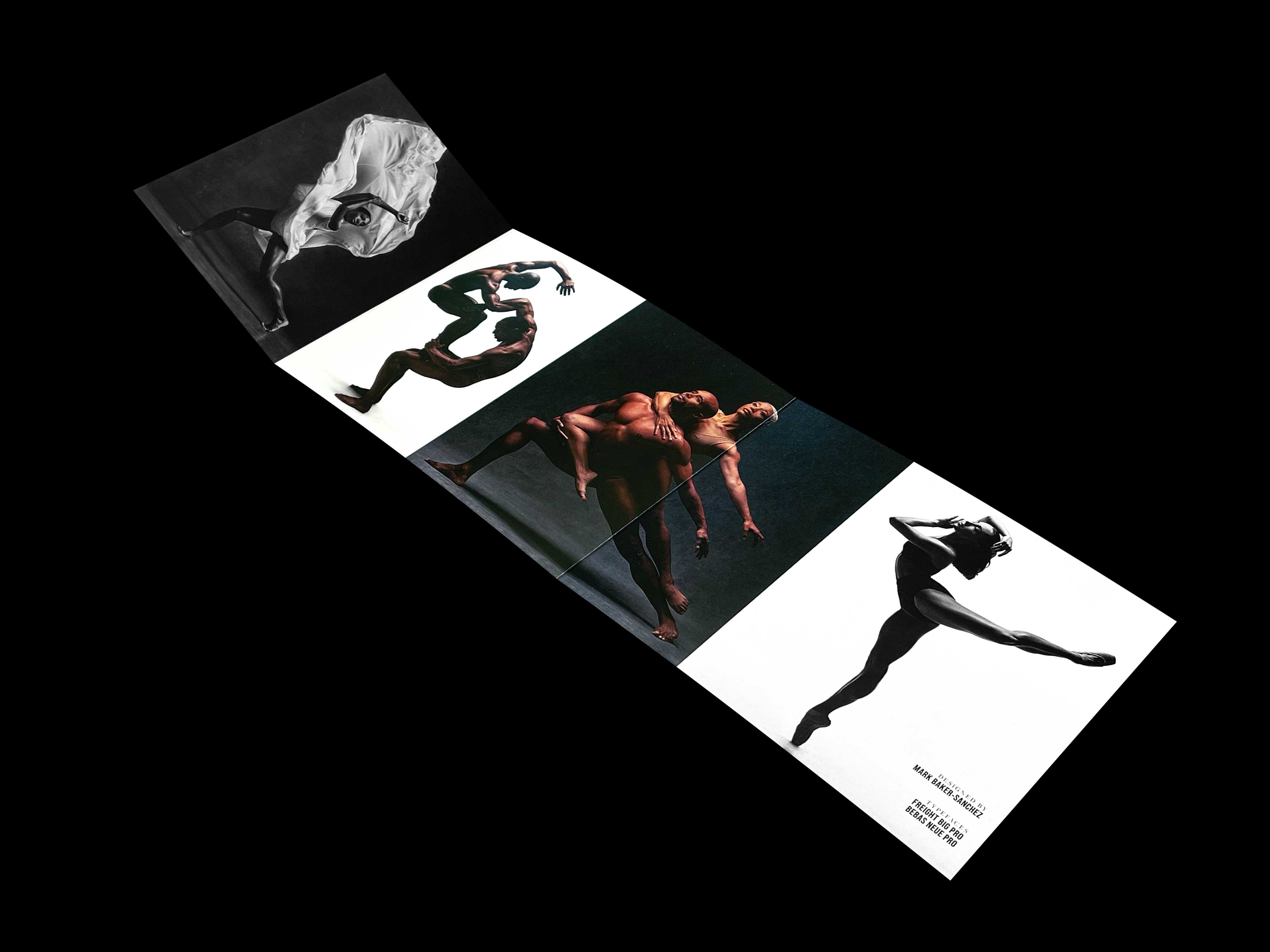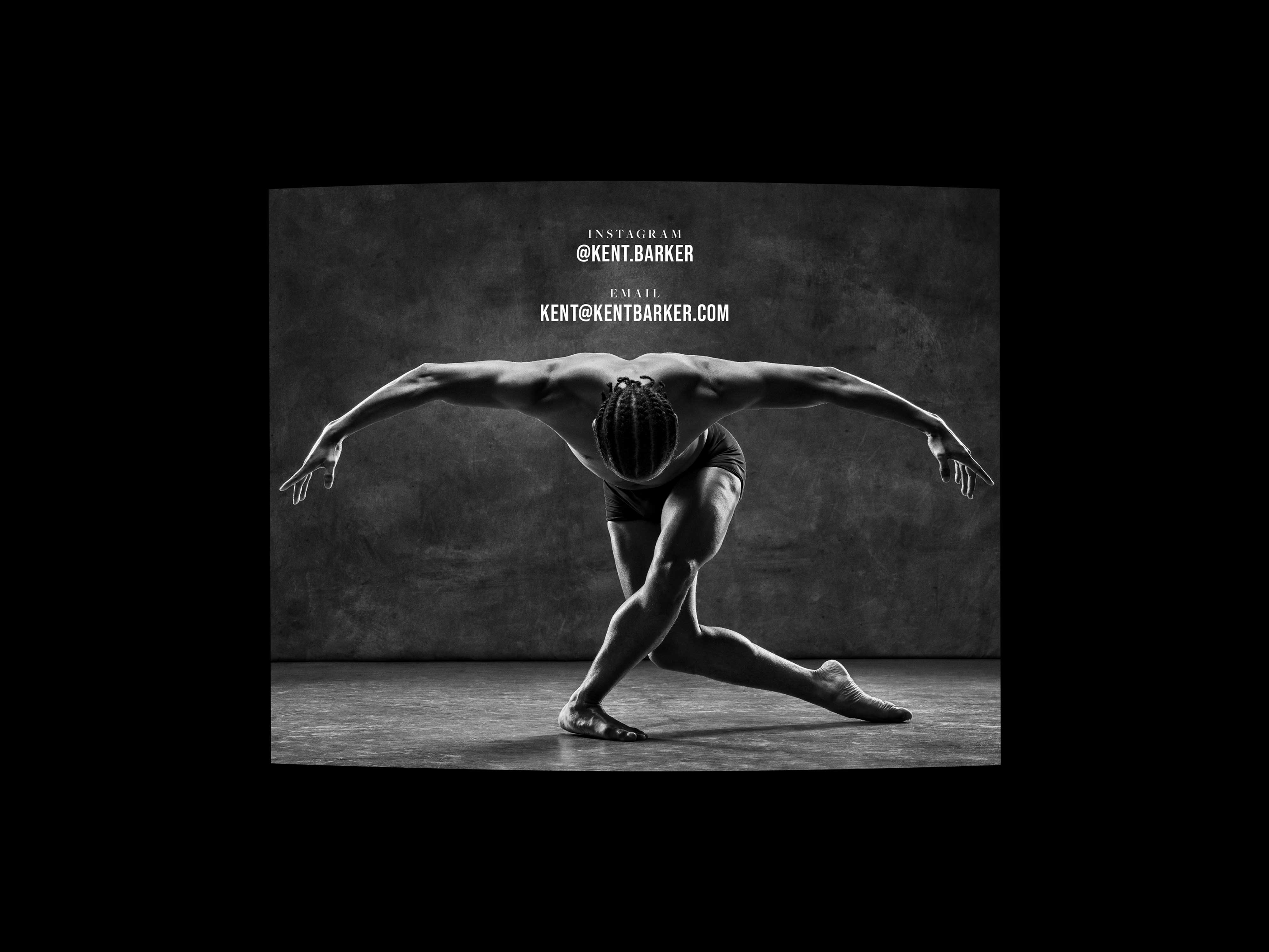 Kent was headed to the 2022 FotoFest Biennial and wanted a high-level printed piece that called attention to his dance imagery and would be something for interviewers to remember him by. This involved naming and designing a foldout that would later translate to his gallery show.